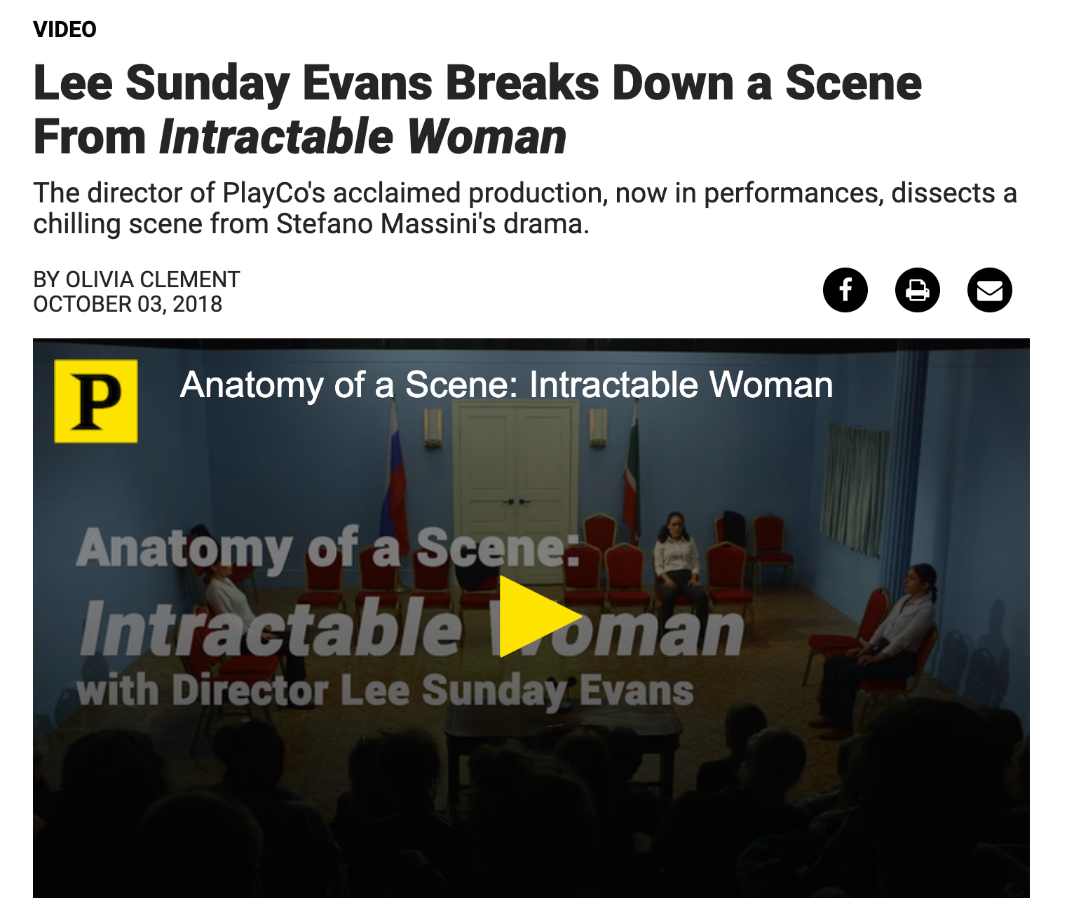 designed Stefano Massini’s Intractable Woman, directed by Lee Sunday Evans.